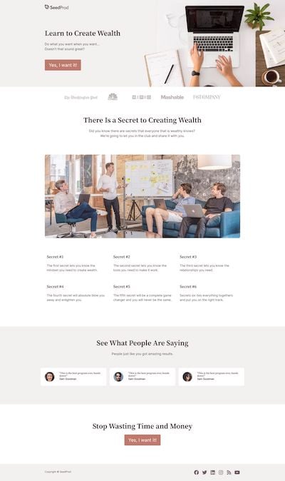 In SeedProd, you’ll find examples of many multipurpose landing page designs, including templates for: