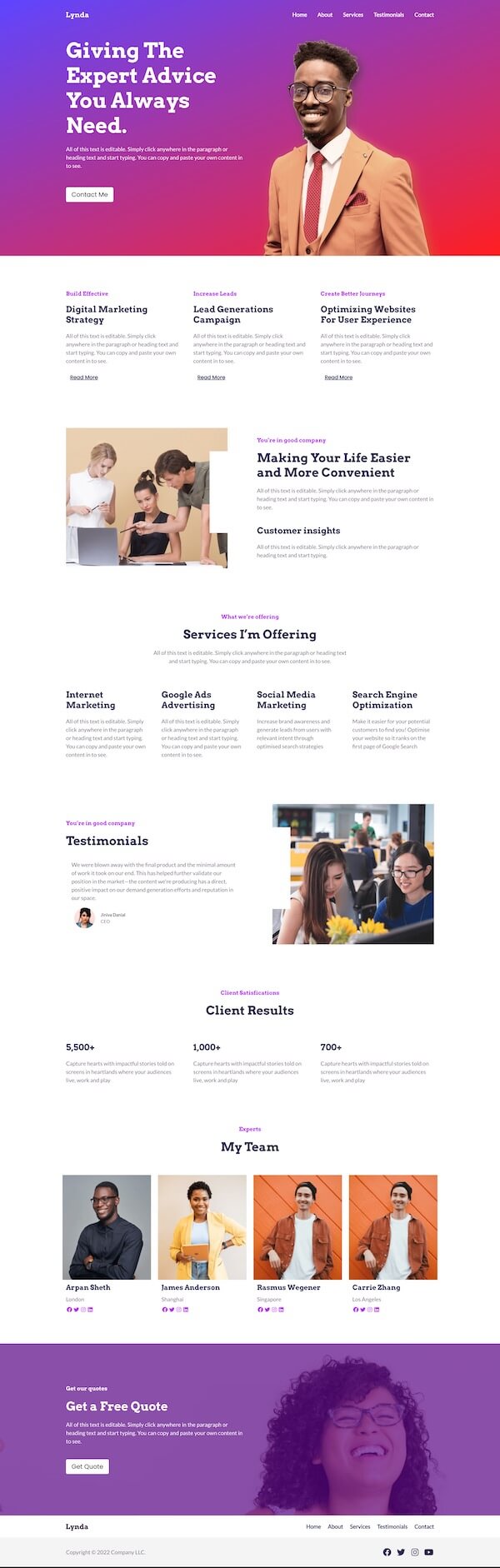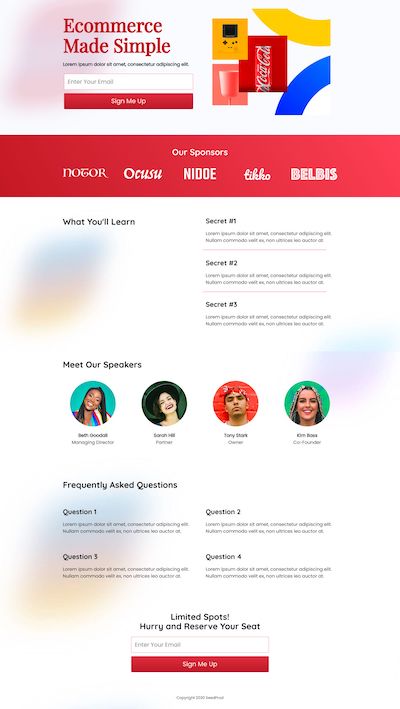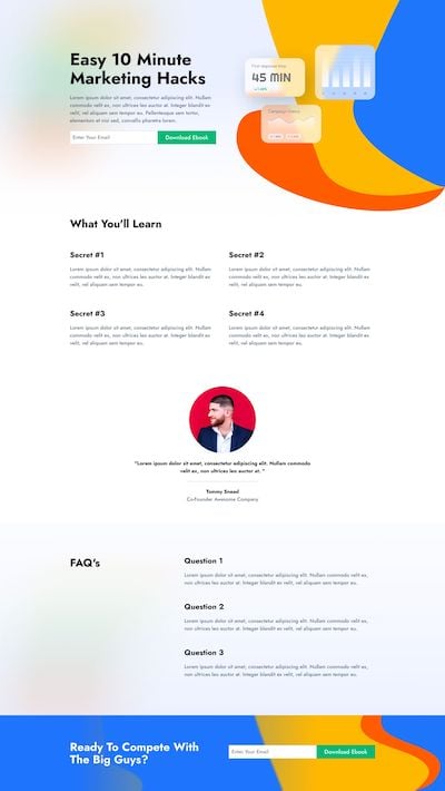 Our free landing page templates and custom website designs allow you to combine our user-friendly landing page blocks to create the perfect page for your marketing campaign. You can also use our page sections, like headers, footers, FAQs, etc., to add pre-made sections to your page without building them block by block.