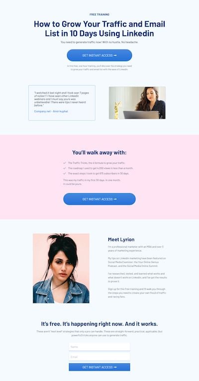 • Call to action: Since there’s only 1 thing you want people to do on your landing page, you should make it easy for them to do it. With a clear call to action button, you can tell visitors exactly what their next step should be.