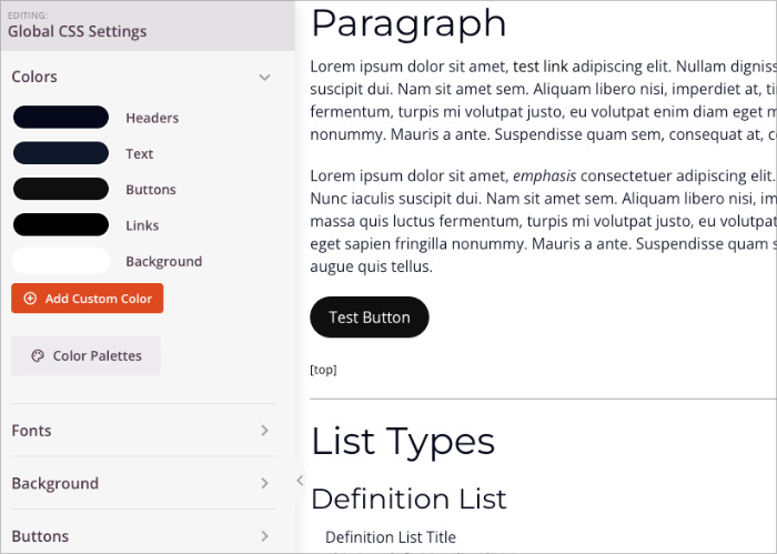 Once you save your changes, every page in your theme will use the same consistent styling.