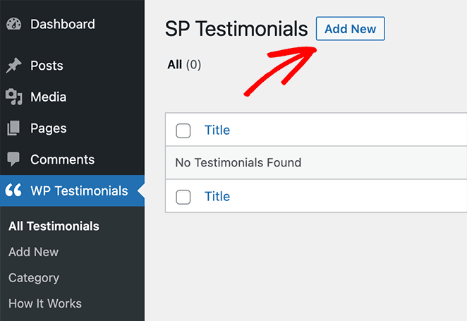 Next, go to WP Testimonials » Add New from your WordPress dashboard.